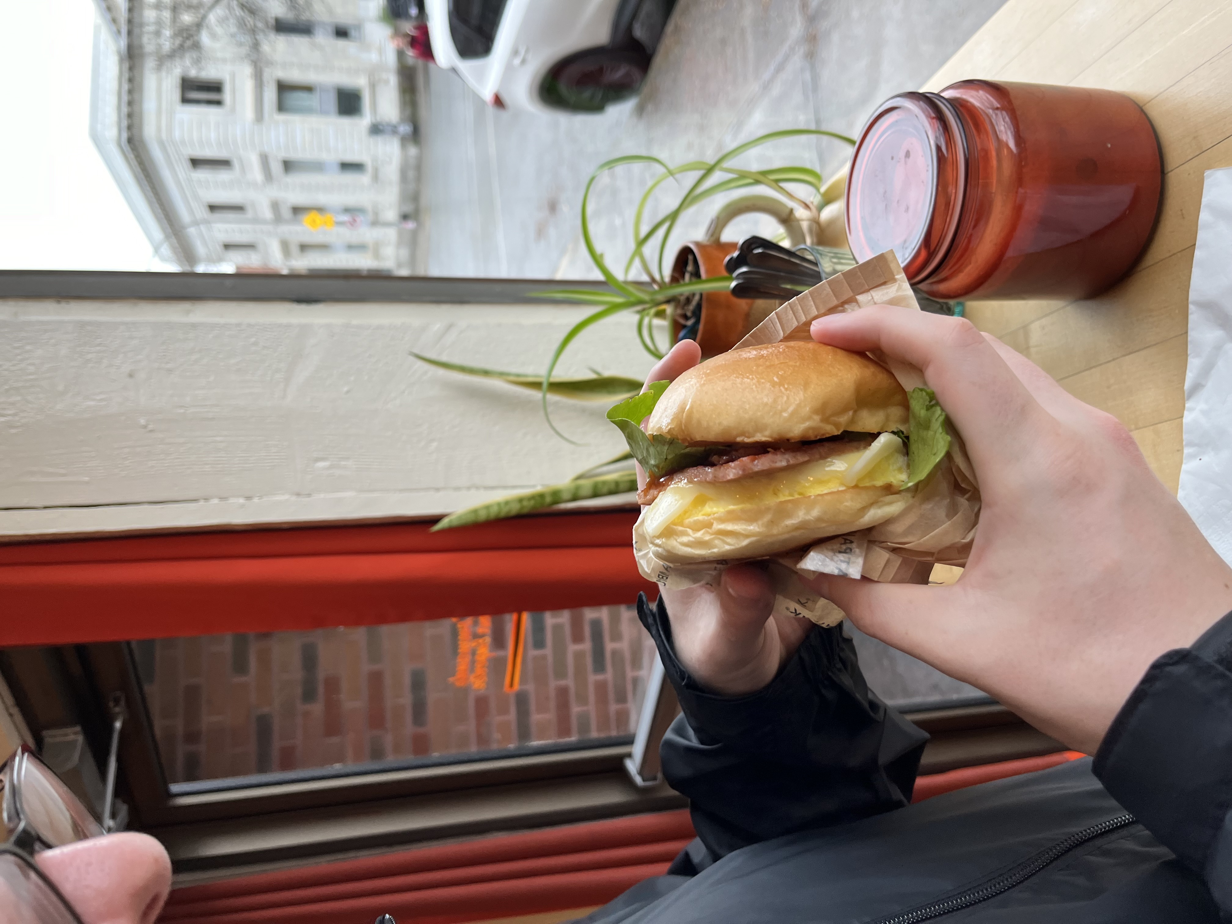 chugging tea and waiting for bo at a lil cafe..